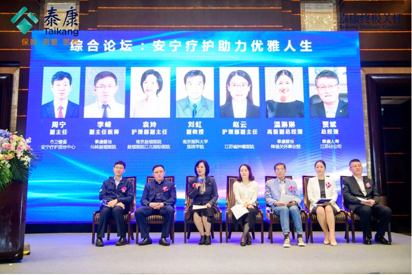 南京市衞健委安寧療護質控中心副主任周寧教授受邀主持《安寧療護助力優雅人生》論壇,與江蘇省腫瘤醫院護理部副主任趙雲教授、南京鼓樓醫院護理部副主任袁玲教授、南京醫科大學醫政學院劉虹教授、泰康人壽江蘇分公司總經理賈斌、泰康仙林鼓樓醫院腫瘤科副主任李嶸、泰康健投終極關懷事業部高級副總經理温琳琳等安寧療護事業的先行者們齊聚一堂,交流探討從事安寧療護事業的心得感受,並祝願泰康安寧療護事業發展順利,也希望攜手同心,促進南京及我國安寧療護事業的長遠發展。