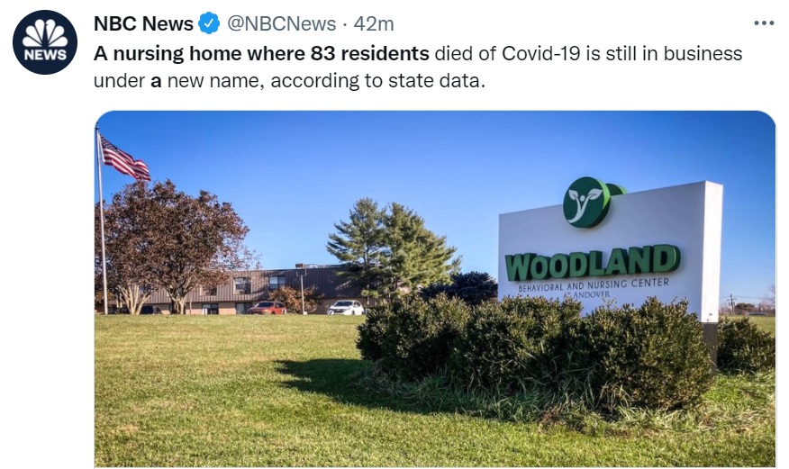 美媒曝一養老院曾有83人死於新冠 改了名繼續營業