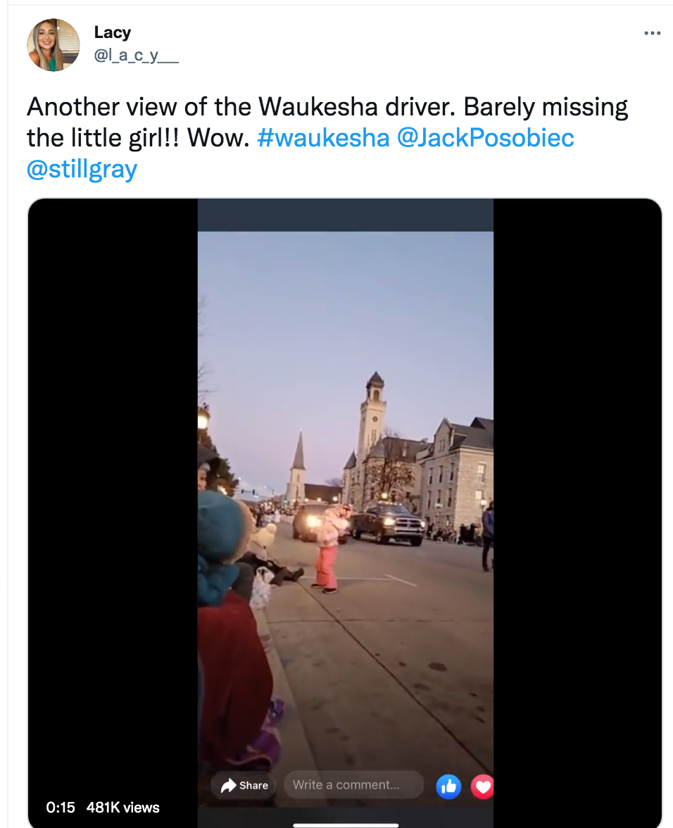 一位推特用户發佈了一段視頻,視頻中一名正參加聖誕遊行的孩子險些被高速行駛的車輛撞倒。