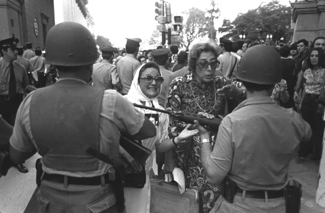 ▲美國曾縱容阿根廷軍政府在各大城市建立秘密小組、一線組織、情報機構、隱藏據點等“恐怖組織”**。這些組織在社會上公開為軍政府辯護,私下采取“失蹤”策略進行“秘密”綁架、監禁、拷打及處決。在1981年的一次有關抵抗該酷刑的遊行中,失蹤者的母親們聲嘶力竭地呼喚着孩子的姓名,卻被軍警無情地阻攔。