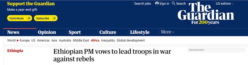 《衞報》報道稱,在阿比發表上述聲明之際,“提人陣”繼續逼近首都亞的斯亞貝巴,聲稱控制了位於首都東北方向220公里的一個小鎮。報道還稱,在埃塞俄比亞政府軍與“提人陣”的鬥爭中,已有成千上萬人喪生。