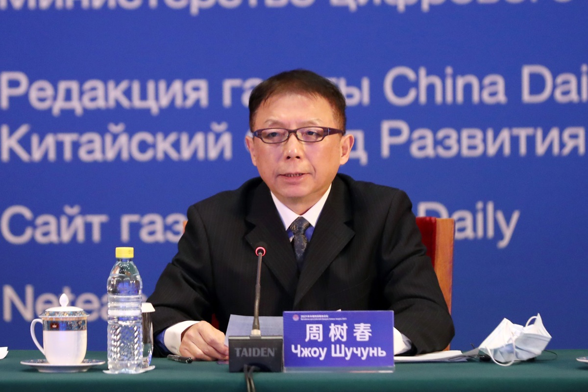 中國國家互聯網信息辦公室副主任牛一兵,俄羅斯聯邦數字發展、通訊與大眾傳媒部副部長切爾科索娃·貝拉·穆哈比耶夫娜,全國政協常委、中國日報社社長兼總編輯周樹春出席論壇並發表致辭。