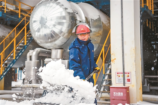 大慶煉化各級幹部員工浴“雪”奮戰,用最快的速度清理廠區積雪,除隱患、穩生產、保外運,以實際行動推動“我為員工羣眾辦實事”實踐活動走深走實、落地見效。(孫慶濤 攝)