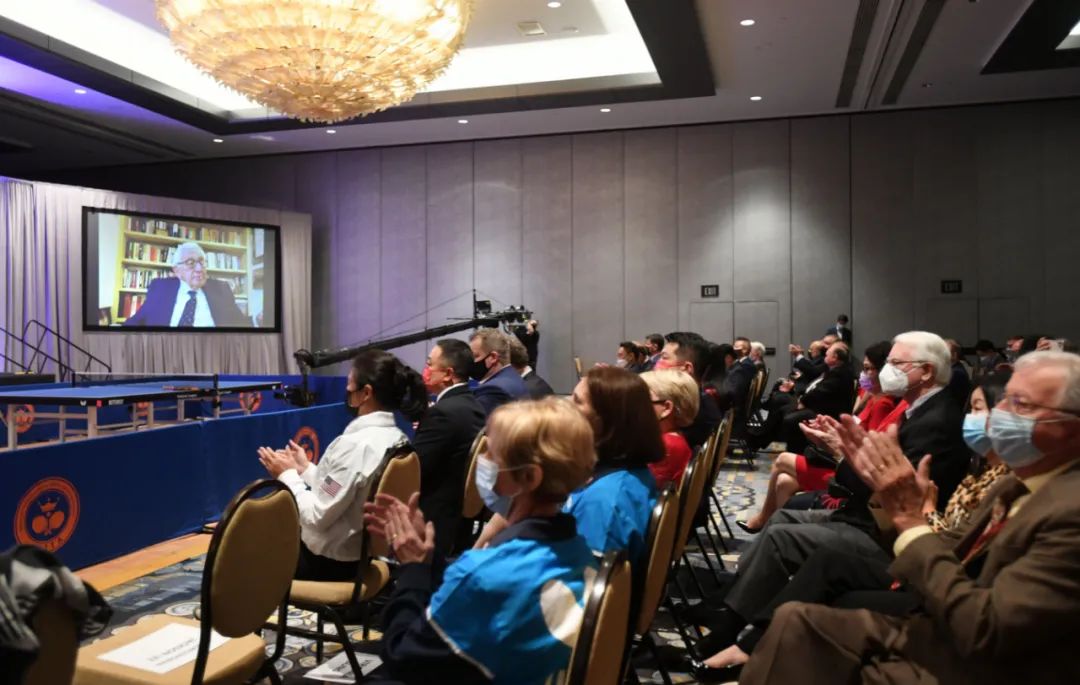 98歲的基辛格是與“乒乓外交”淵源極深的人物。23日休斯敦世乒賽開幕當晚,中美乒協聯合舉行中美乒乓外交50週年紀念活動,基辛格發表視頻致辭,看似簡短平淡,但包含深意。