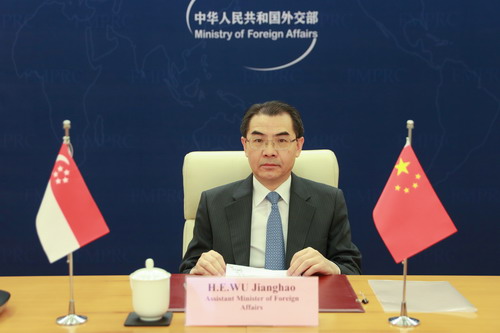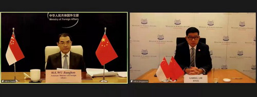 2021年11月24日,外交部部長助理吳江浩同新加坡貿工部常秘林明亮以視頻方式舉行中新雙邊合作機制會議高官會。
