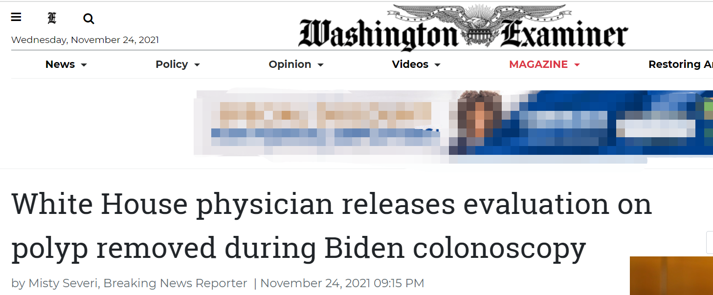 報道稱,白宮醫生凱文·奧康納在當地時間24日晚發佈的一份備忘錄中説,腺瘤是“良性的”、“生長緩慢但可能癌前病變”。這位醫生還説,被送往實驗室進行組織學檢查的息肉與拜登在2008年切除的息肉相似。