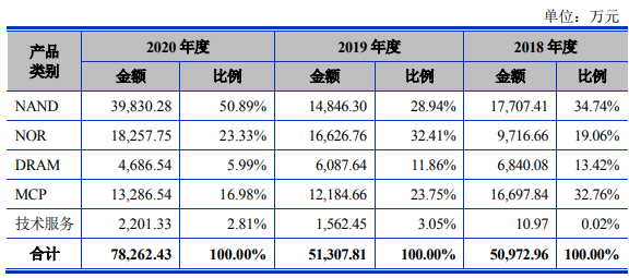 2014年11月,東芯半導體在上海設立,致力於實現國產NAND Flash產品從無到有的突破,成為領先的閃存設計公司。通過7年的努力,東芯半導體已經成為一家產品覆蓋NAND、NOR、DRAM全品類的閃存設計公司。當前,東芯半導體主要產品收入按產品類別構成如下: