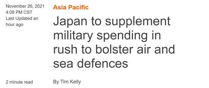 報道稱,根據日本防衞省的説法,雖然增加軍費支出很常見,但這筆增加的軍費支出是有史以來規模最大的一筆資金。