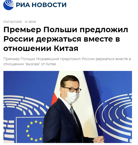 據俄新社25日報道,波蘭總理莫拉維茨基受訪時公開拉攏俄羅斯,聲稱波蘭和俄羅斯需要共同應對來自中國的挑戰。