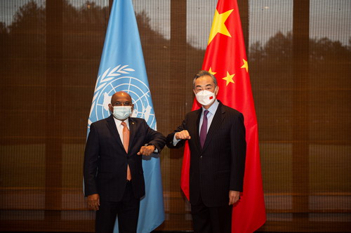 2021年11月25日,國務委員兼外長王毅在浙江安吉同第76屆聯合國大會主席、馬爾代夫外長沙希德舉行會談。