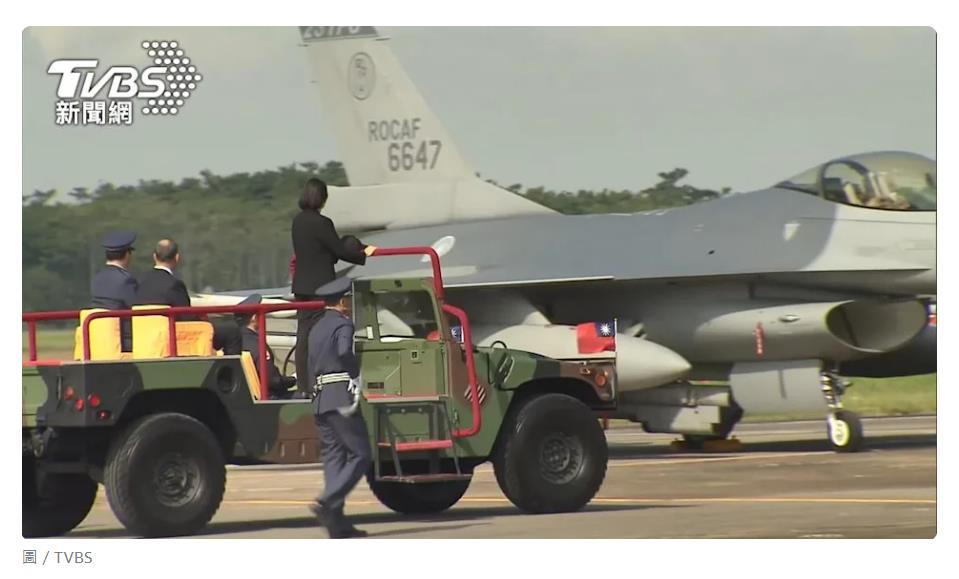 台媒報道蔡英文視察F-16戰機的畫面。