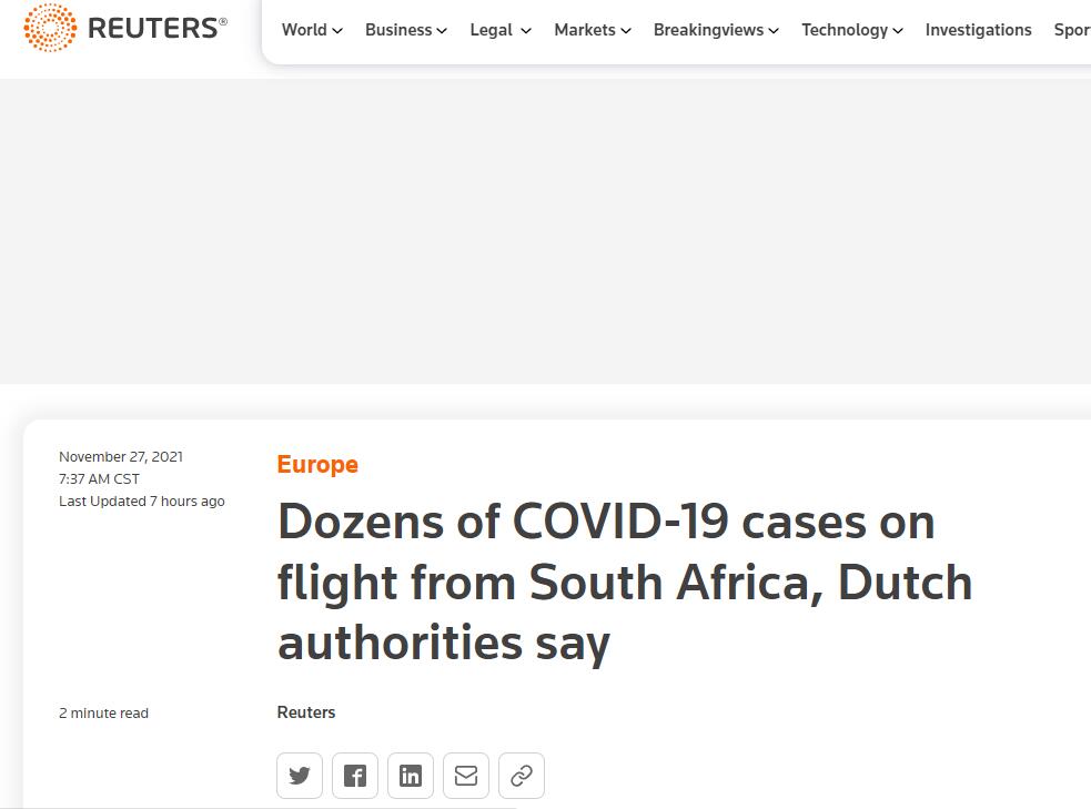 報道介紹稱,荷蘭政府26日稍早已禁止所有來自南非的班機降落。荷蘭衞生部長表示,已經在前往荷蘭途中的旅客,在抵達時必須接受檢測。