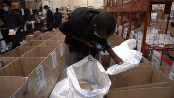 11月19日,肯尼亞快遞員加布裏埃爾·奧維諾正在分揀包裹。新華社記者 黎華玲 攝