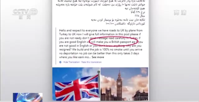 從蛇頭組織在社交媒體上發佈的前往歐洲的偷渡廣告可以看到,有些蛇頭甚至宣稱可以幫忙搞到英國護照,以及保證安全。