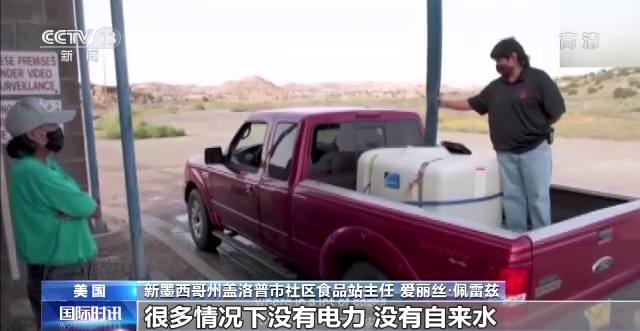 *新墨西哥州蓋洛普市社區食品站主任 愛麗絲·佩雷茲:*住在保留地的人們很多情況下沒有電力,沒有自來水,因此他們很難在疫情中做到殺菌消毒。