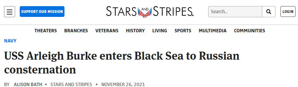 美國《星條旗報》11月26日報道稱,當天又有一艘美國軍艦進入黑海,這再次引發了俄羅斯的關注。《星條旗報》在報道中甚至用了“驚愕”(Consternation)一詞來形容美軍此舉給俄羅斯帶來的反應。