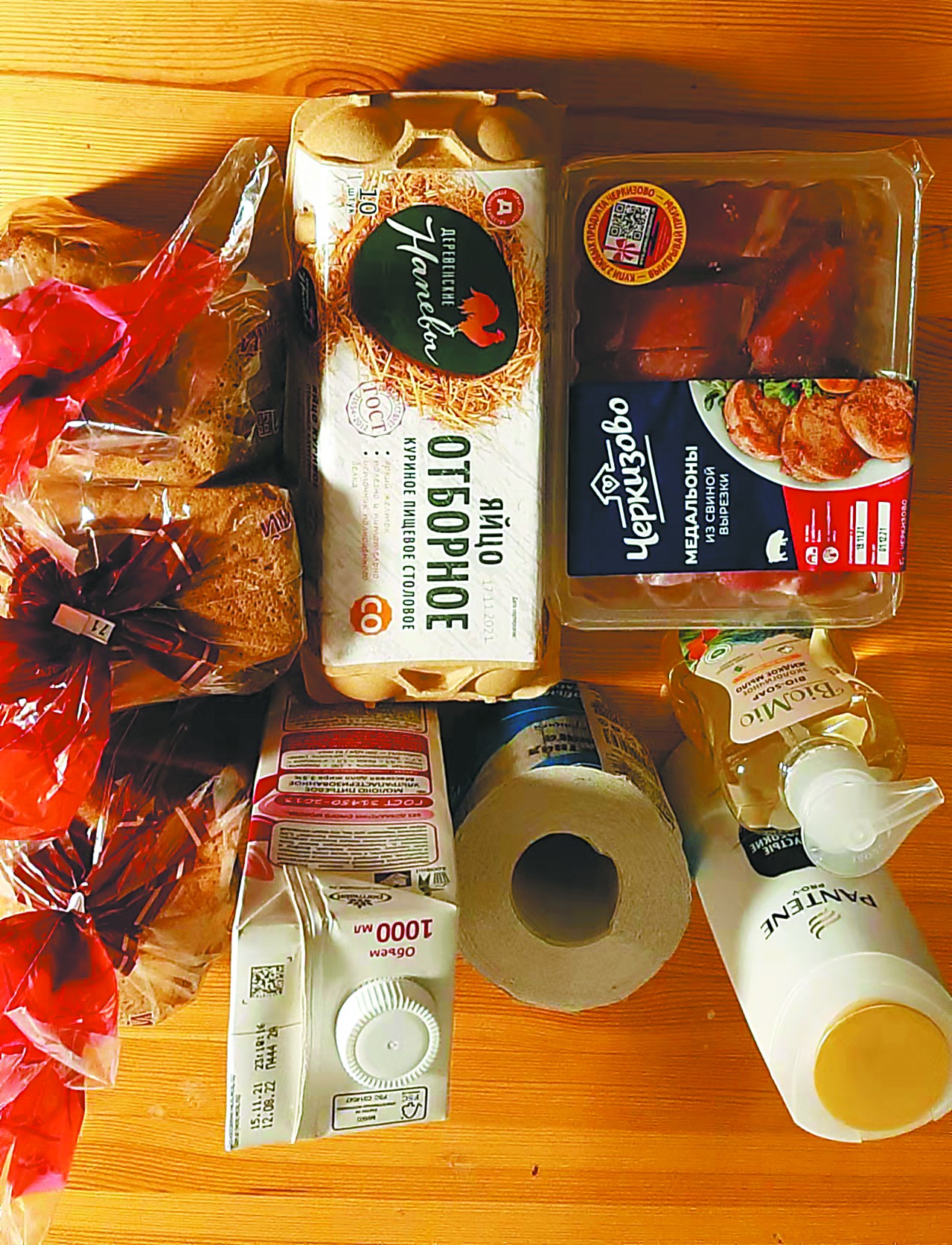 除了雞蛋,牛奶、豬肉、麪包等,貨架上貨源充足,但有殺菌功能的洗手液和單卷裝衞生紙竟然脱銷無貨。記者用手機登錄季克西的網上超市,發現網上超市中衞生紙、洗手液依然有售,甚至有的物品比實體店便宜。記者最終通過手機在網店下單,訂購瞭如下商品:一瓶1升裝的帕瑪拉特牌牛奶,82.39盧布;一盒雞蛋,10個總共90.63盧布;一斤豬裏脊肉,288.39盧布;3小袋黑麥麪包,共74.13盧布;一卷衞生紙,10.20盧布;一瓶500毫升洗髮香波,339.80盧布;5小瓶洗手消毒液,共500毫升,411.95盧布。這7樣商品總計1297.49盧布,約合109.69元人民幣。