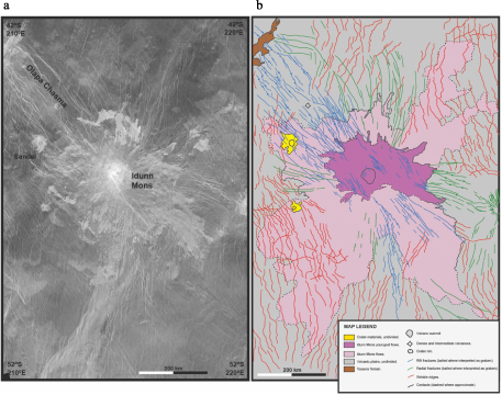 歐洲的 Venus Express 軌道飛行器在2006年至2014年期間環繞該星球,發現各地的熔岩流沉積物--包括Idunn Mons--在紅外線下發光。金星的腐蝕性大氣層迅速吞噬了火山礦物,使它們的紅外線光芒變暗。因此,這些強烈的熱輻射被認為代表了最近在25萬年前噴發的熔岩。但是最近的實驗工作,即火山礦物在金星大氣條件下被烘烤,其降解速度比以前想象的要快,這意味着這些熔岩可能是在過去1000年內噴發的。而且,具體到Idunn Mons,風被破壞的程度超過了根據火山的地形所預期的程度。作者認為熔化的岩石產生的熱量可能增加了火山上方的湍流。