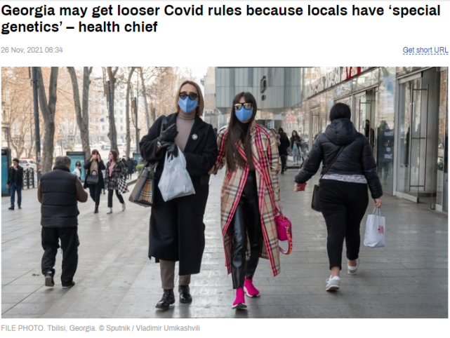 這位部長説,與其他歐洲國家的公民不同,格魯吉亞人即使在半年多前感染過新冠病毒,也可以獲得“綠色通行證”。在解釋為何這個國家的人是如此不同時,她説,這“可能來自我們的基因和性格。”