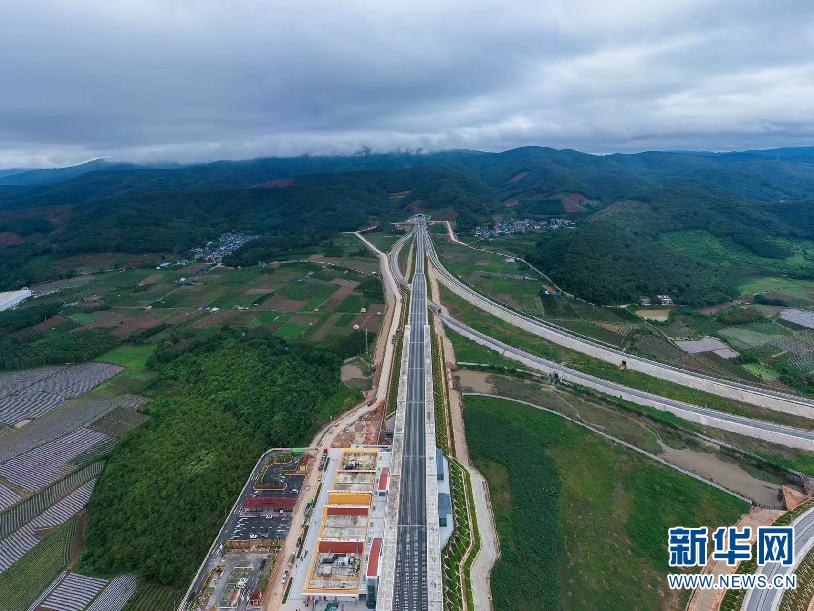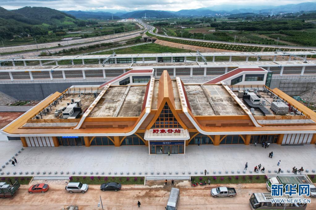 航拍視角下的墨江站站房和站區(攝於10月29日)。(新華網 趙普凡 攝)