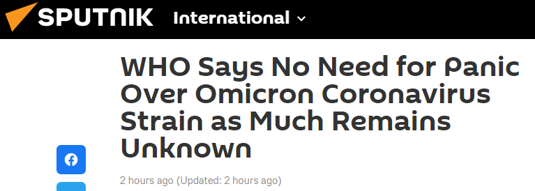 世衞組織駐俄羅斯代表:無需對變異毒株奧密克戎感到恐慌,因為仍有未知數