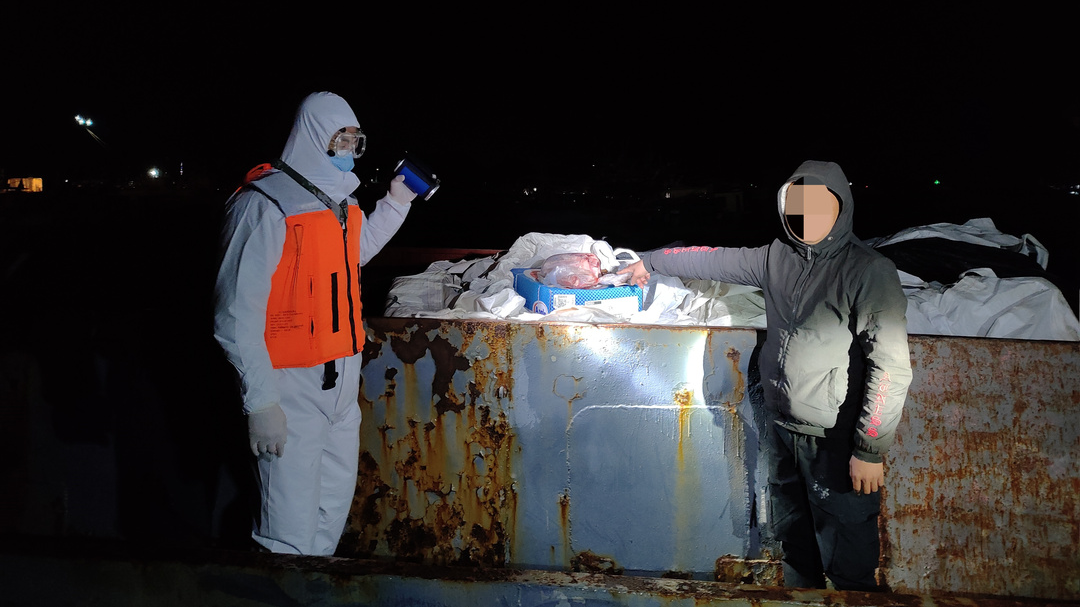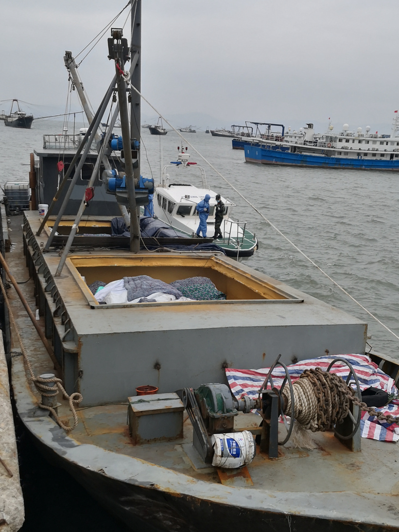 11月22日,廣東江門海警局根據情報獲悉,在江門台山附近海域有一船舶涉嫌從事走私活動。該局立即指派在附近海域巡邏的執法艇前往目標海域查緝,經過比對排查,執法員很快鎖定了一艘無舷號信息的灰色鐵殼船。執法員依法登臨後發現,船上裝載着涉嫌走私凍品豬腳、豬肚共80餘噸,總案值約400萬元。且3名隨船人員未能提供合法貨物來源證明以及該船舶相關合法有效證件,涉嫌走私。