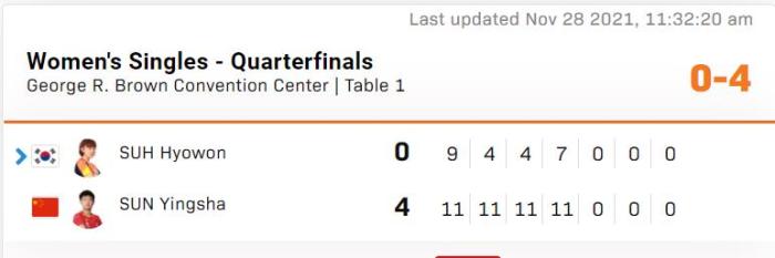 而隨着孫穎莎4:0戰勝韓國削球手徐孝元,成功晉級四強。至此中國乒乓球隊成功包攬本屆世乒賽女單四強席位。