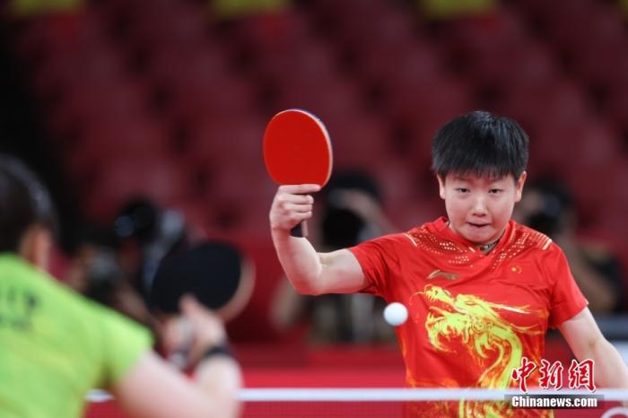 資料圖:東京奧運會乒乓球女單半決賽中,中國選手孫穎莎4:0戰勝日本選手伊藤美誠。中新社記者 杜洋 攝