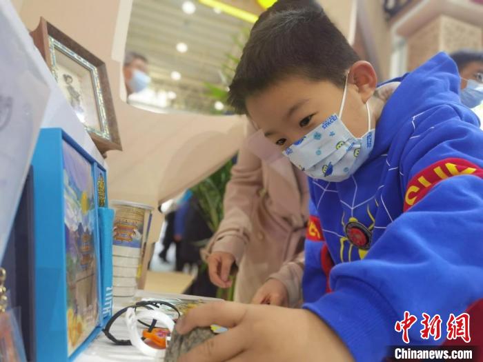 圖為武漢市的小朋友被甘肅嘉峪關市的文創所吸引。 甘肅省文化和旅遊廳供圖