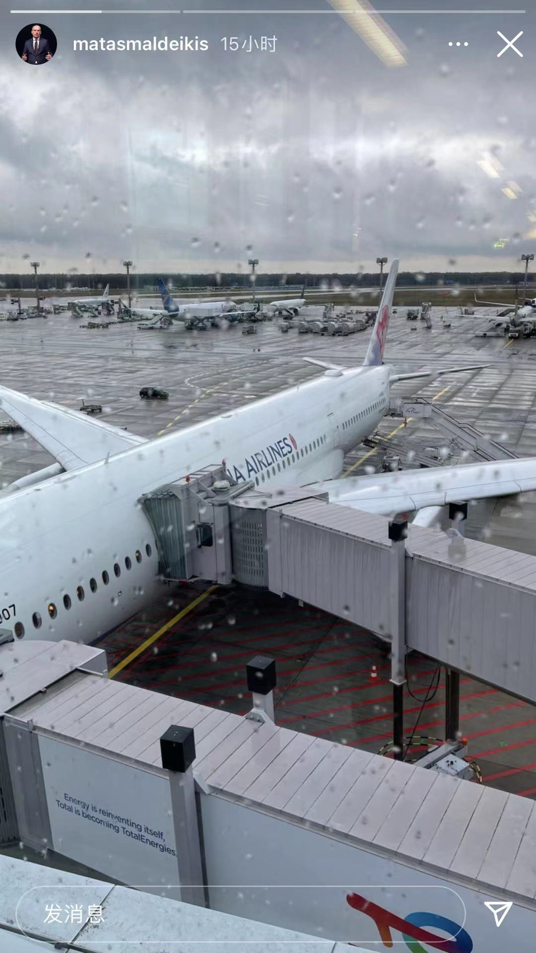 台灣媒體稱,立陶宛國會“友台小組”主席馬爾德基斯27日通過社交平台Instagram貼出華航飛機照,立陶宛國會議員馬提約沙帝斯當天也發佈機艙照片,並聲稱“出訪行程開始,法蘭克福到台北,13小時航程”,立陶宛國會議員薩卡利埃內同樣發佈了自己在飛機上的自拍照。