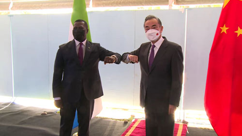 當地時間2021年11月28日,國務委員兼外長王毅在達喀爾會見出席中非合作論壇第八屆部長級會議的塞拉利昂外長弗朗西斯。