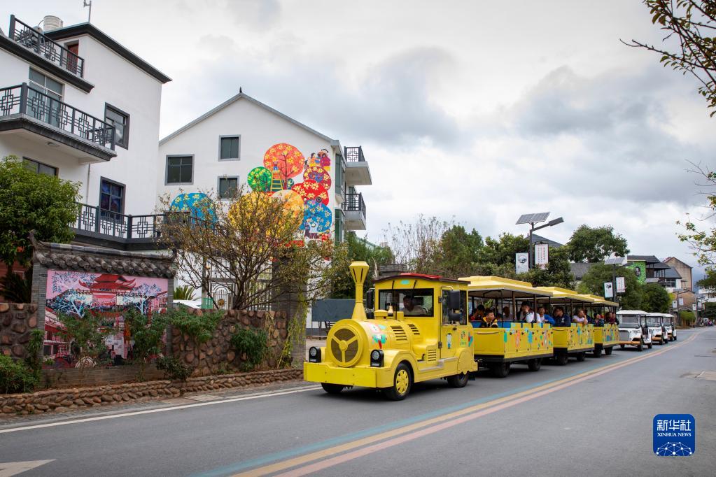10月16日,遊覽“小火車”穿行在餘東村。新華社發