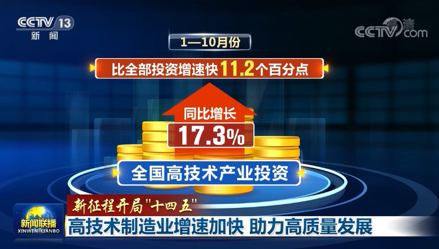 在高技術製造業帶動作用持續增強的同時,更多新投資也在不斷湧入。1—10月份,全國高技術產業投資同比增長17.3%,比全部投資增速快11.2個百分點。