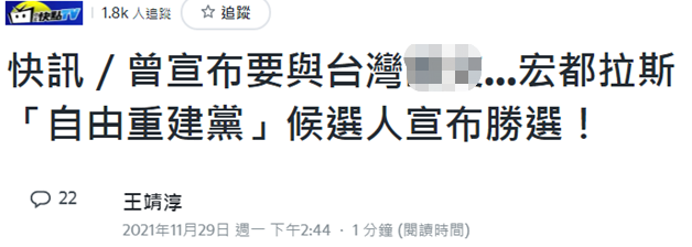 台媒緊盯:洪都拉斯大選,曾表示要和台灣“斷交”的候選人已自行宣佈贏得選舉