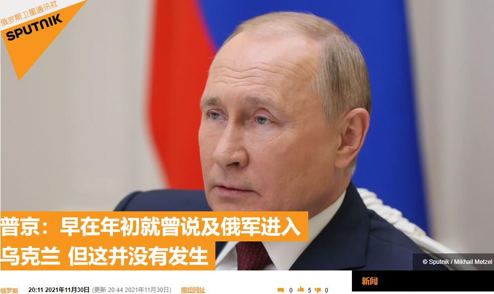 【環球網報道】俄羅斯衞星網30日消息,對於西方一些國家近來頻繁炒作“俄羅斯準備入侵烏克蘭”一事,俄羅斯總統普京30日表示:他們在年初就談過俄羅斯軍隊進入烏克蘭,但這並沒有發生。