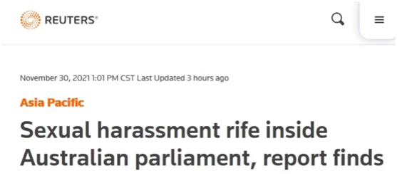 驚人發現!調查報告顯示:1/3澳大利亞議會工作人員遭遇過性騷擾
