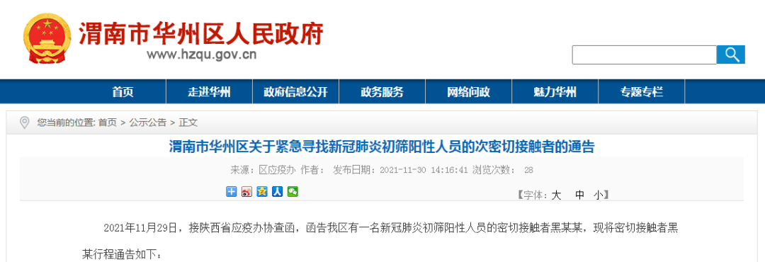2021年11月29日,接陝西省應疫辦協查函,函告我區有一名新冠肺炎初篩陽性人員的密切接觸者黑某某 ,現將密切接觸者黑某行程通告如下: