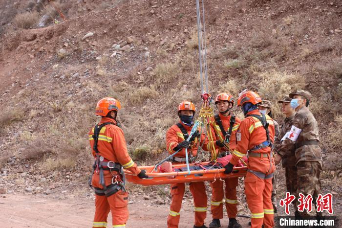圖為模擬救助傷員。 昌都市森林消防支隊 攝