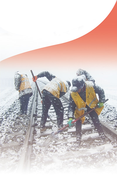 中國鐵路青藏集團公司職工冒雪對整修後的道牀進行清理。