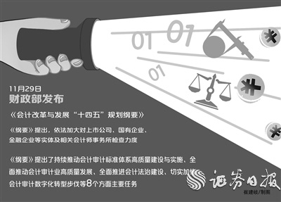 11月29日,財政部發布《會計改革與發展“十四五”規劃綱要》(簡稱《綱要》)。《綱要》提出,依法加大對上市公司、國有企業、金融企業等實體及相關會計師事務所檢查力度。