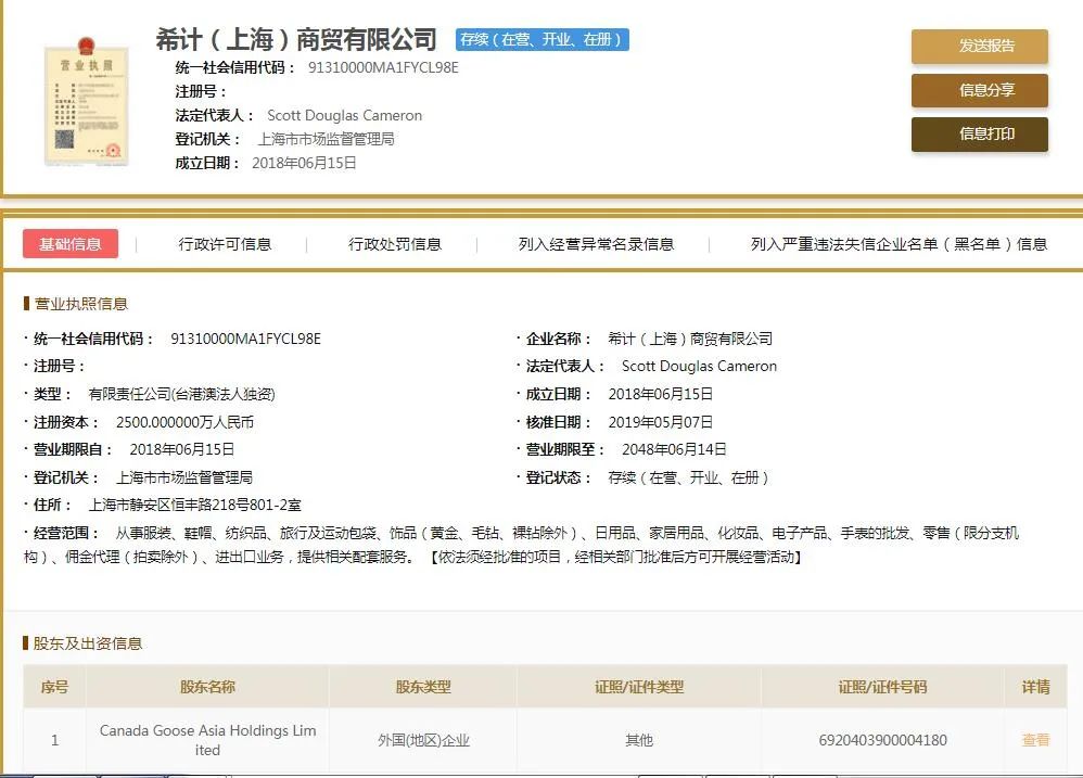 國家企業信用信息公示系統網站近日披露的一則行政處罰決定書顯示,2018年9月起希計委託上海博道電子商務有限公司在其天貓旗艦店發佈“我們的所有羽絨混合材料均含有Hutterite羽絨,這是優良且最保暖的加拿大羽絨”的文字內容。