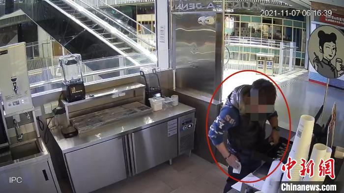 屬地南京東路派出所民警接報後迅速趕到了現場,通過幾家商鋪提供的公共視頻,鎖定了一名身穿黑衣的可疑男子。案發當日的6時至7時,正是這名黑衣男子竄入多個半開放式的商鋪進行盜竊。