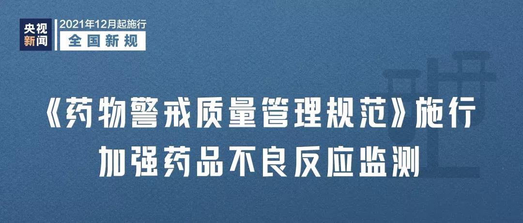 《藥物警戒質量管理規範》12月1日起施行。明確藥品上市許可持有人和藥品註冊申請人應當建立藥物警戒體系,監測、識別、評估和控制藥品不良反應及其他與用藥有關的有害反應。