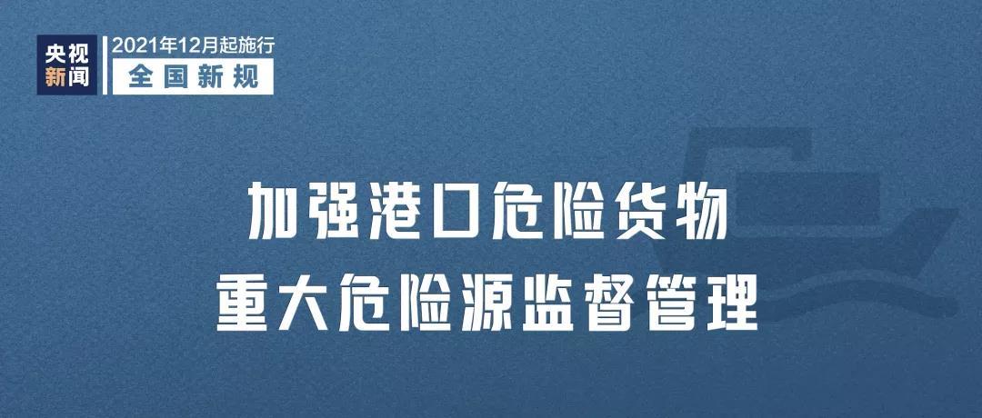 《港口危險貨物重大危險源監督管理辦法》12月1日起施行。建立港口重大危險源安全責任制,明確每一處重大危險源的主要負責人、技術負責人和操作負責人。