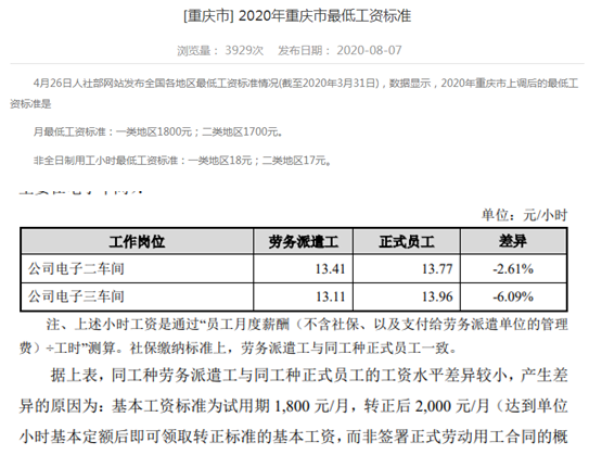 瑜欣電子大量員工的工資標準低於重慶市最低工資水平,其是否通過低工資獲取利潤?這是值得關注的。