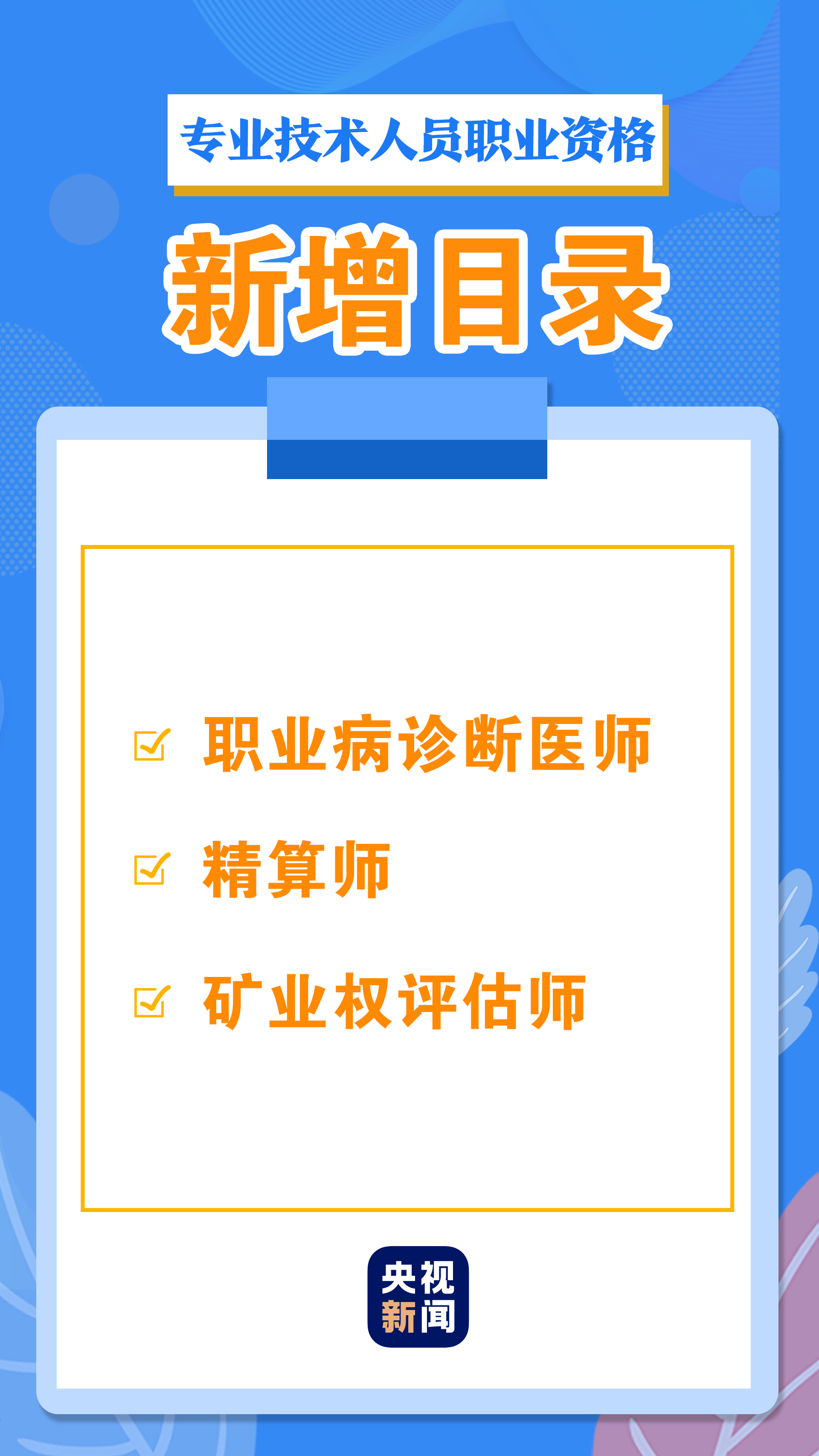 新增“精算師”“礦業權評估師”水平評價類職業資格,在醫生資格下設置“職業病診斷醫師”子項。