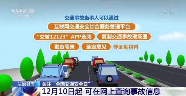 今年12月10日,交通事故證據材料網上查閲將在全國範圍內全面推廣應用,交通事故當事人可以通過互聯網交通安全綜合服務管理平台、“交管12123”App查閲、複製交通事故現場圖、勘查筆錄、鑑定意見等證據材料,實現“現場查閲”延伸到“網上查閲”,為當事人提供更多查詢渠道和便利。警方建議,在出行過程中發生交通事故,應第一時間選擇報警,並隨時通過相關網絡平台上查詢掌握事故信息,不讓犯罪分子有可乘之機。