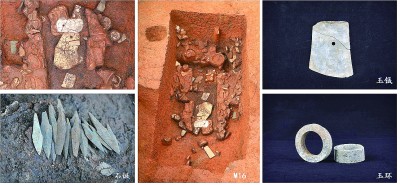 廣東省文物考古研究所研究員劉鎖強介紹,遺址總面積約5萬平方米,包含居住區、墓葬區等多個功能區,但居住區也夾雜少量墓葬,可見居住生活和喪葬並未完全分開。墓葬區共發掘墓葬66座。墓葬表現出明顯的等級分化,高等級墓葬普遍隨葬玉器,其中16號墓隨葬品超過140件,包括嶺南地區所見體量最大的高節玉琮。他認為,該遺址所屬的石峽文化距今四五千年,扮演了文明起源階段長江流域與嶺南地區人羣互動和文化交流的樞紐角色。