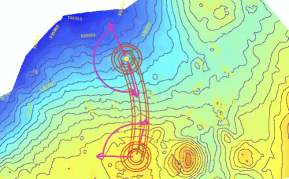 圖2 當前地形等高線圖