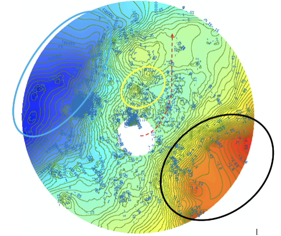 儘管沿着正北偏東方向(紅色虛線所示) 似有突圍的希望,但是駕駛員們也對後續路線略感擔憂。從等高線圖看,東北方向等高線雖然相對稀疏,但在視野盡頭處又隱隱有閉合之勢,也許仍會是一片陡峭地形,機遇和挑戰究竟誰會先來呢? 繼續前行的選擇是對是錯?在這充滿未知的月背區域,一切都有可能。